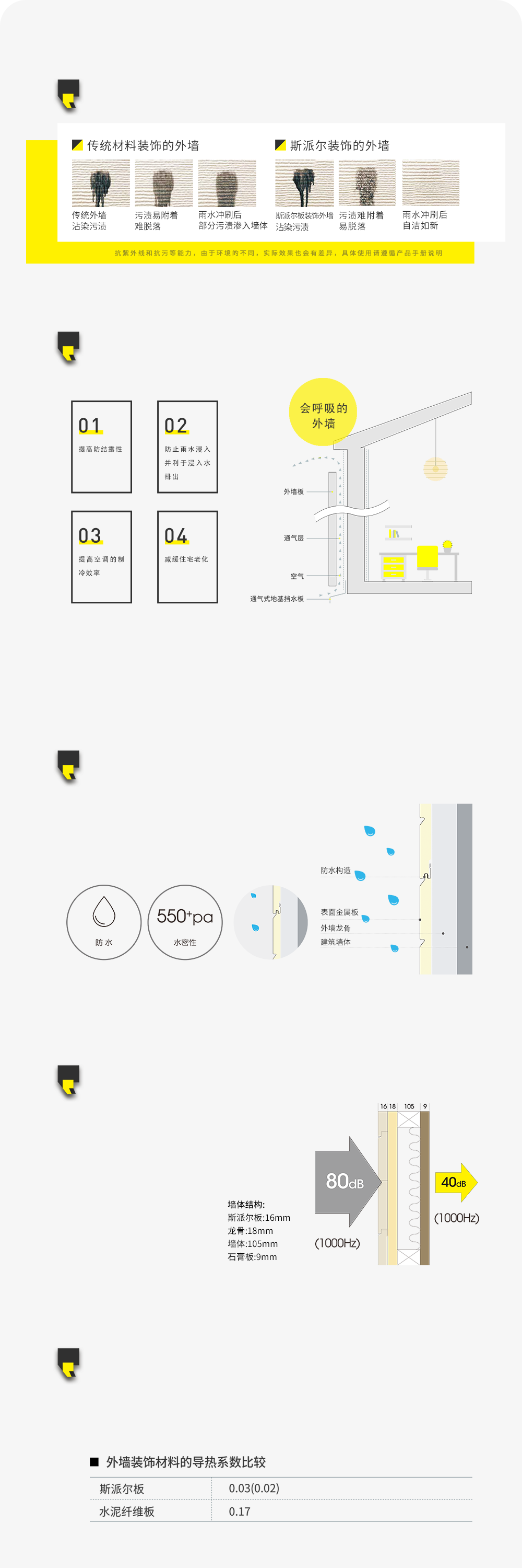 斯派尔板采用的硬质发泡聚氨酯,导热系数较低,其特有的闭孔性和高抗气体扩散性使其隔热保温性能更好。在达到同样保温的要求下,可减少建筑物外围护结构厚度,从而增加室内使用面积。