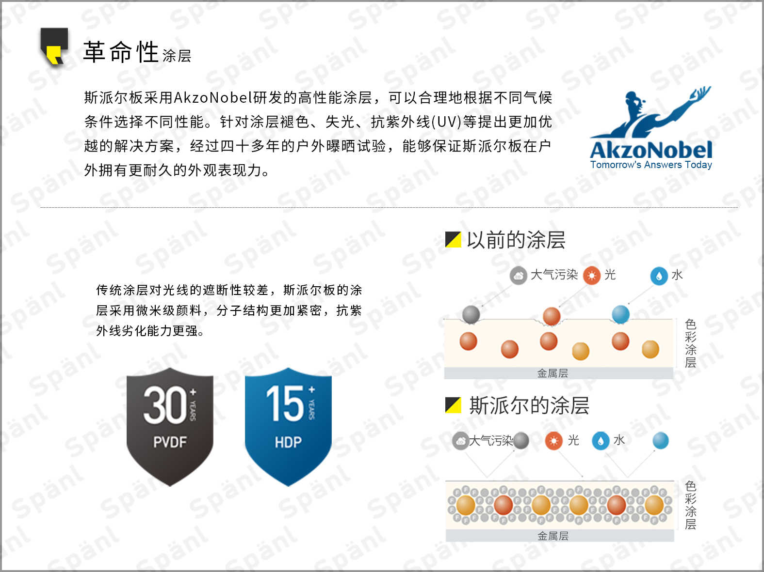 斯派尔AIR+系列精钻级保温装饰墙板(保温雕花板)兼具保温的机械设计强度和视觉的立体冲击效果,其丰富的色彩图案,颇具视觉效果的肌理,让斯派尔精钻级保温装饰墙板在建筑的内装和外装领域相互贯通,满足用户个性化的装饰需求。斯派尔板采用AkzoNobel研发的高性能涂层,为不同地域的客户根据当地气候条件提供更适合的板材。